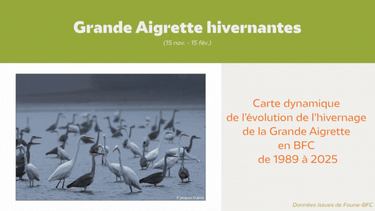Evolution de l'hivernage de la Grande Aigrette en BFC de 1989 à 2025 à partir des données de Faune-BFC
